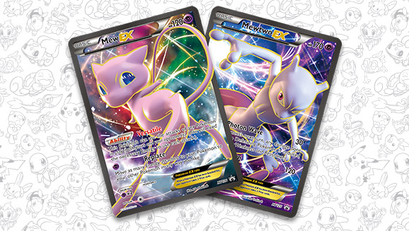 2 never-before-seen foil promo cards featuring Mew-EX and Mewtwo-EX